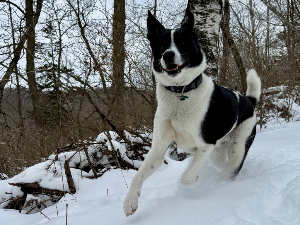 Watching this pup live her absolute best life bounding through the snow! There was no way to not enjoy the moment as she ran all over in the snow.