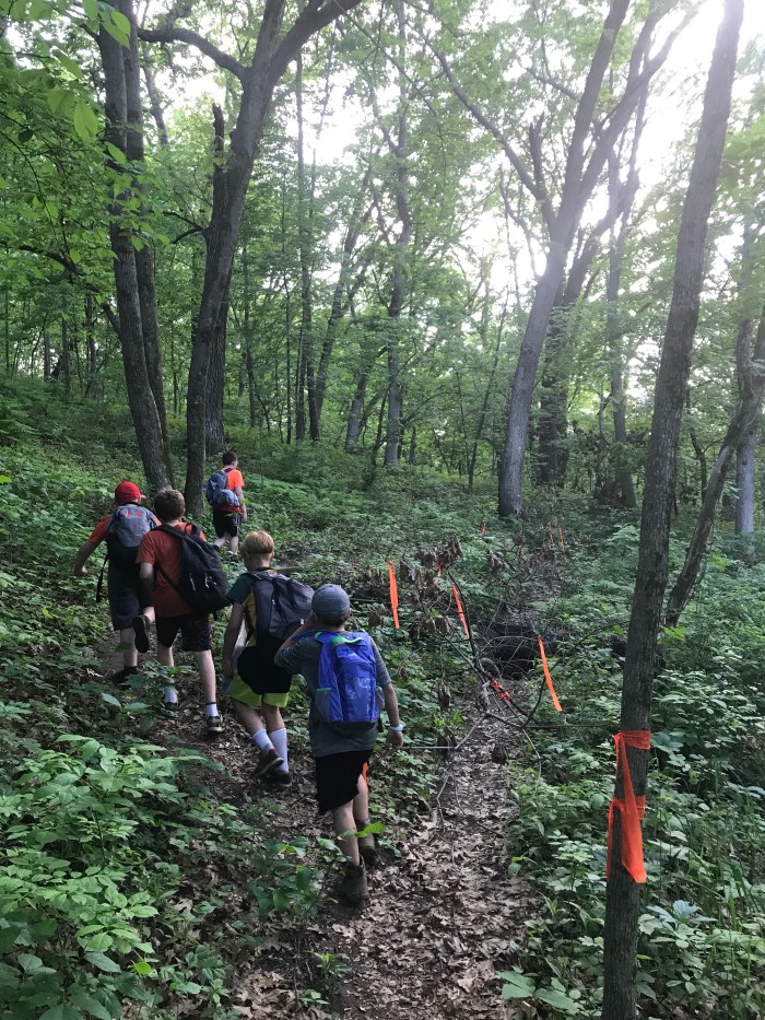 To finish up our hiking award the scouts and a few brave parents went on a 3.5+ mile hike in Hixon Forest on the side of the bluffs. Not only did we have to hike it, but we had to collect garbage as a service project and then prepare and eat a meal on the trail.