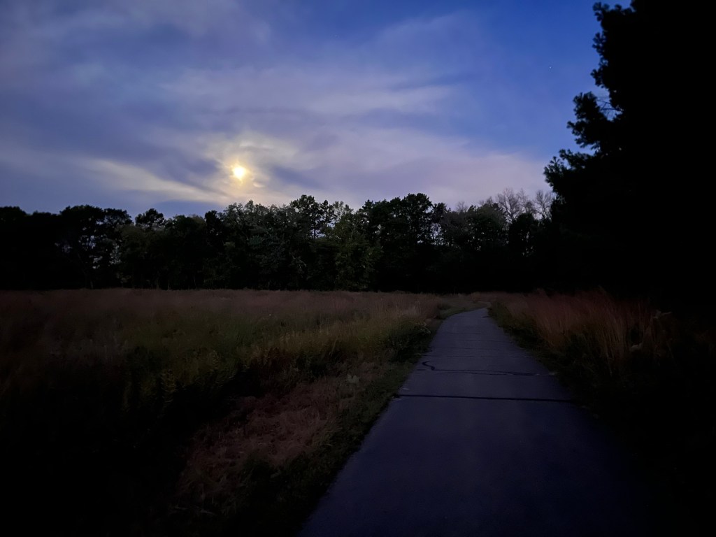 While running alone in the dark in a moonlit field with bluffs and forests surrounding the trail I found peace. When running in the dark of the woods my headlamp became an alarm clock for the whitetail deer bedded down the edge of the trail.