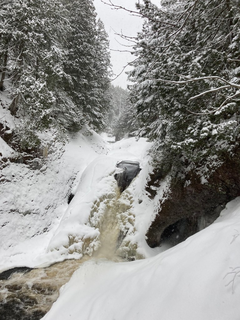 A frozen waterfall in the Upper Peninsula of Michigan in January of 2021